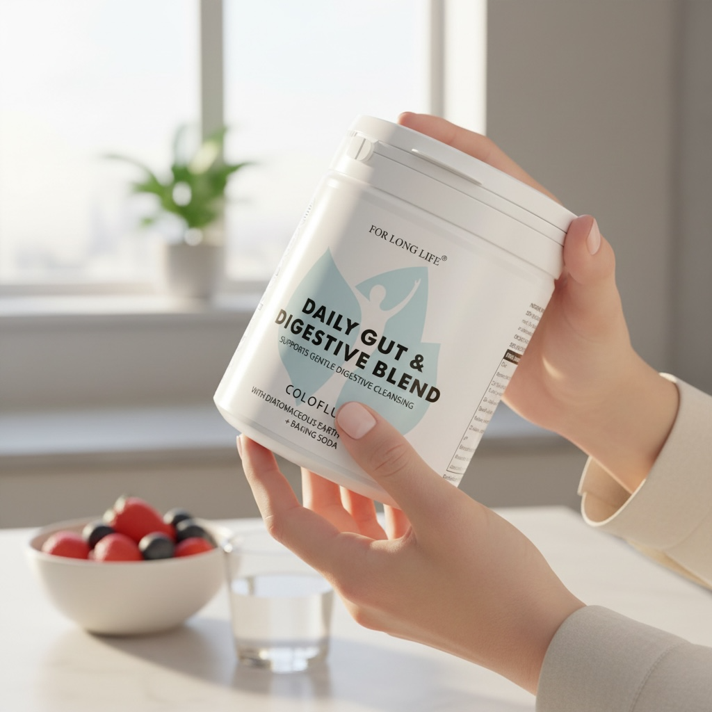 Diatomaceous earth is composed of fossilized diatoms—microscopic algae rich in silica, a mineral essential for connective tissue health, detoxification, and immune function. Studies have shown silica may help reduce heavy metal accumulation, support the lymphatic system, and promote the integrity of the gut lining. Combined with natural prebiotics, COLOFLUSH may enhance nutrient uptake, contribute to bowel regularity, and support whole-body vitality.