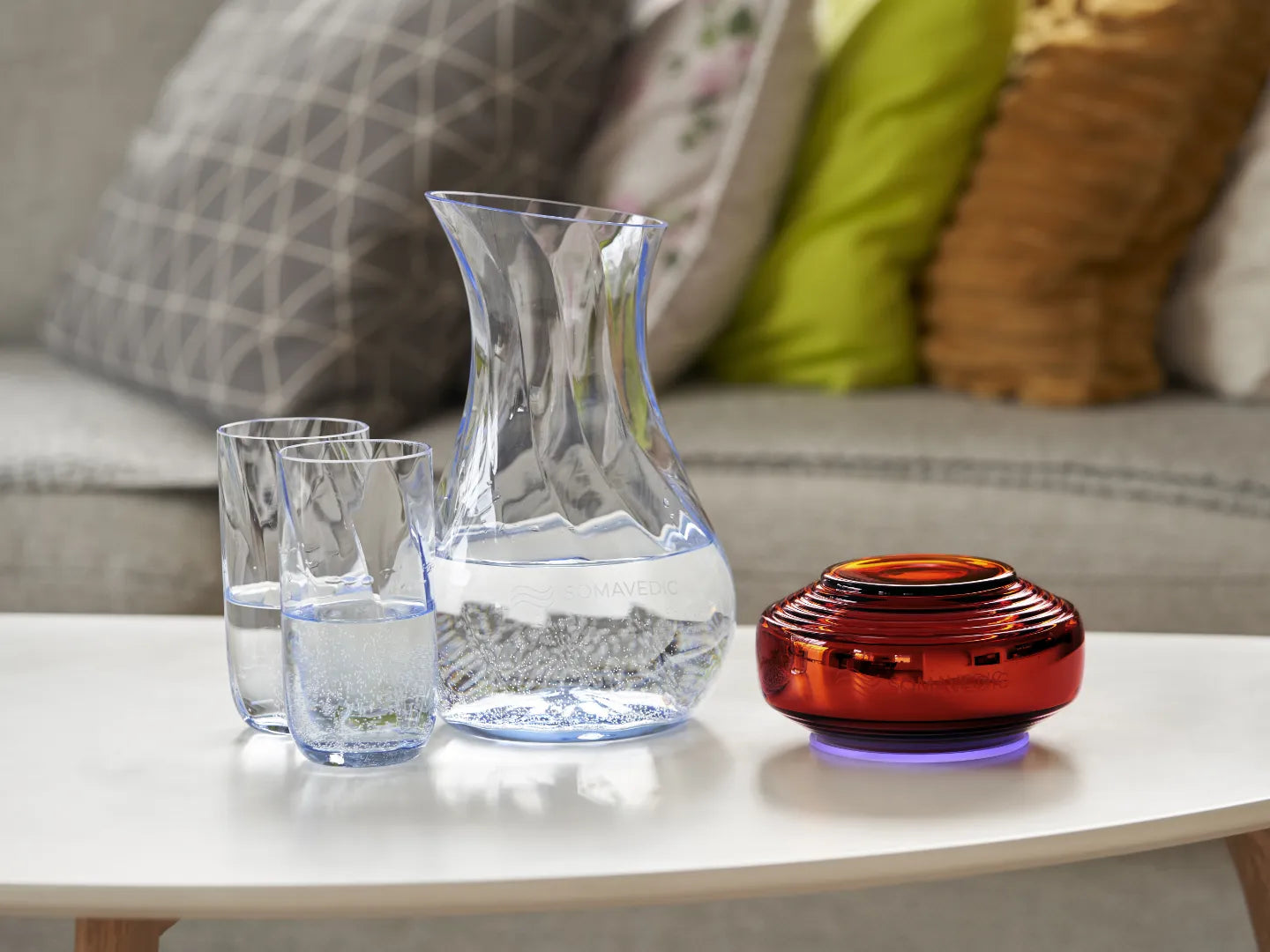 Somavedic Amber can create harmonized, structured water and help you increase your hydration capabilities. To achieve the maximum absorption with the structured water simply put your water next to the Somavedic, ideally not further than 20 cm (8 inches) away. The desired effect of 100% structured water occurs in 10-15 minutes. With Amber you can enjoy a spring quality water with no compromise.